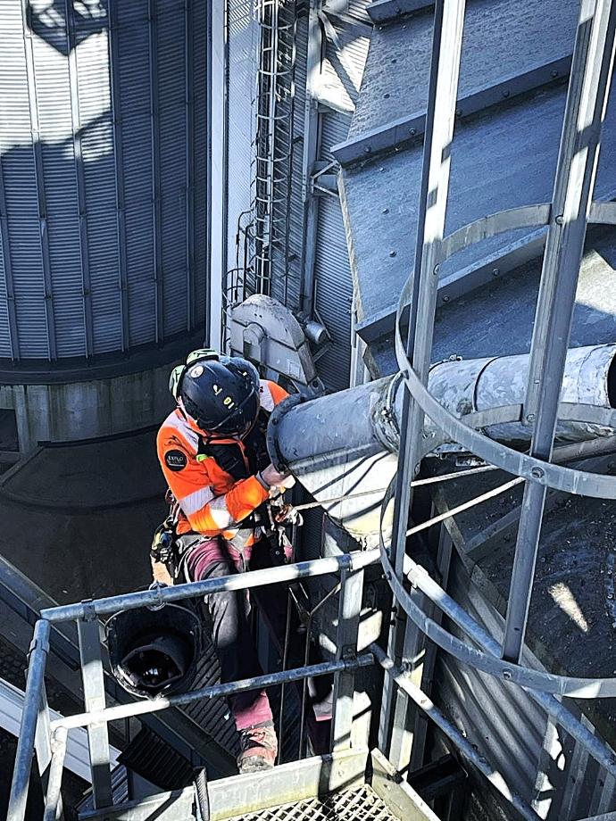 Les équipes EXPLOLUX – Groupe NA 🌐 sont récemment intervenues pour le débouchage d’une conduite de maïs sur des silos de 30 mètres de hauteur.