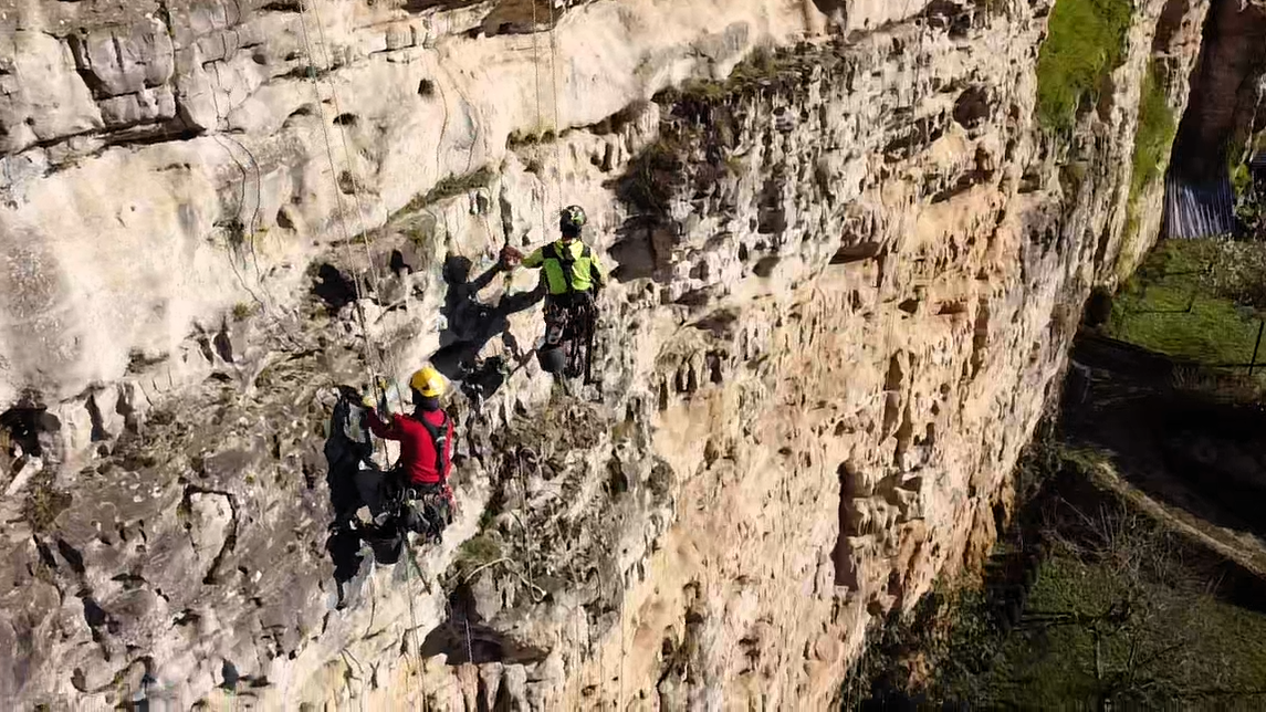 Une opération technique réalisée sur cordes pour sécuriser un ouvrage de 30 mètres de hauteur sur 280 mètres de longueur.